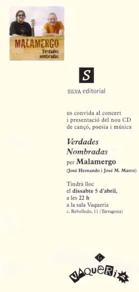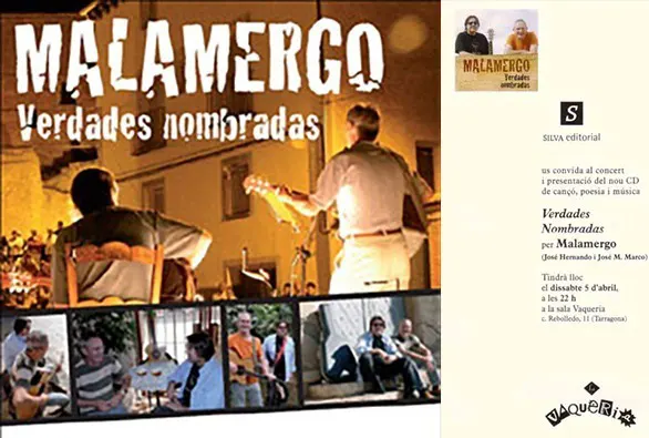 MalaMergo, palabra de origen visigodo que significa punto de encuentro vuelve a reunir (después de casi 20 años de silencio) a José Hernando (compositor, guitarra acústica y voz) y José María Marco (guitarra eléctrica, española y voz), con la ambición de llevar la poesía a un público variado, con diferentes estilos musicales y con formatos acústicos y eléctricos.